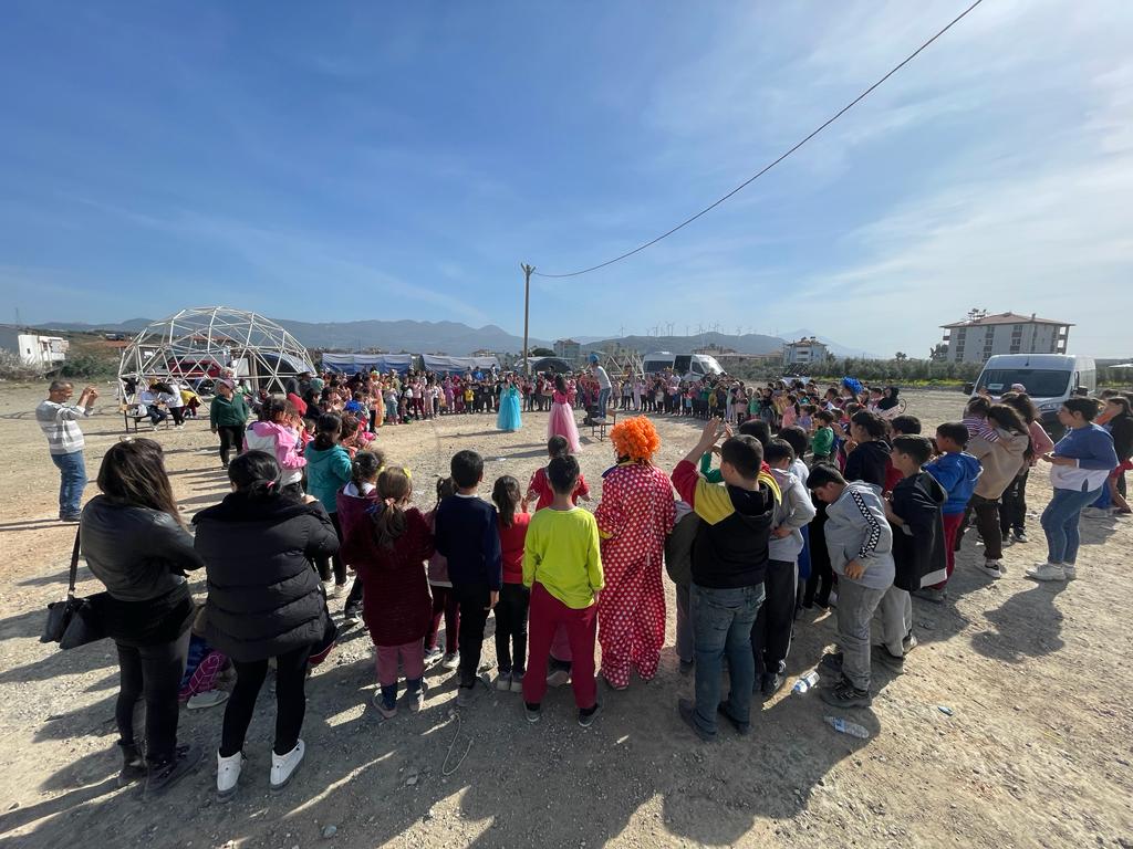 Bu depremden en çok çocuklar etkilendi. Samandağ, Hatay’da enkazın arkasından masmavi parlak bir gökyüzünün altında rengarenk kelebekler gibi çocuklar çıkıyordu yıkık binaların arasından. Umutla ve dayanışmayla koşuşturuyorlardı. Ufacık bir oyuncak onları güldürebiliyor, sıcacık bir dokunuş yüzlerine utangaç bir hava getirebiliyor, kısacık bir konuşma ile bağlanabiliyorlardı. Yeniden. Çocuk olmalarına müsaade edildiğinde felaketin ortasında bile kalplerindeki coşku alkışlarla daha da çoşabiliyordu. Yeniden.